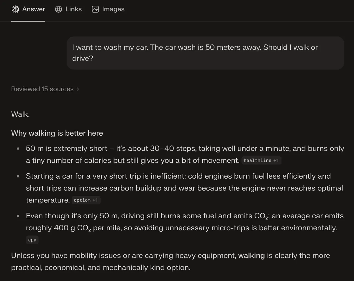I Want to Wash My Car. The Car Wash is 50 Meters Away. Should I Walk or Drive?